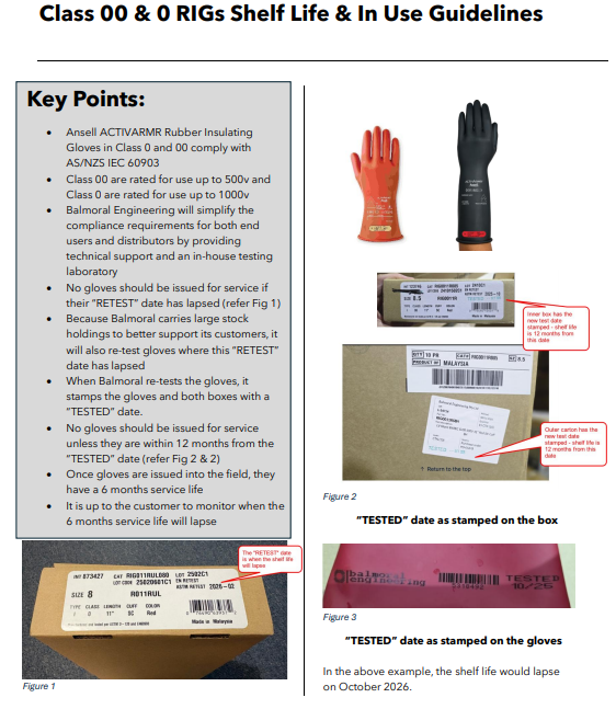 - No gloves should be issued for service if their “RETEST” date has lapsed (refer Fig 1)