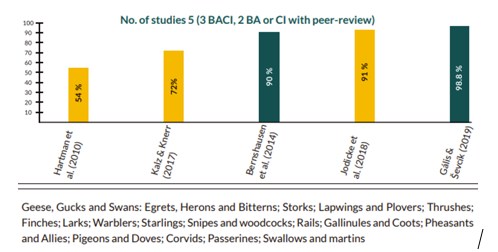 Below scientific studies show the reductions effectiveness of the flapper type bird diverters.