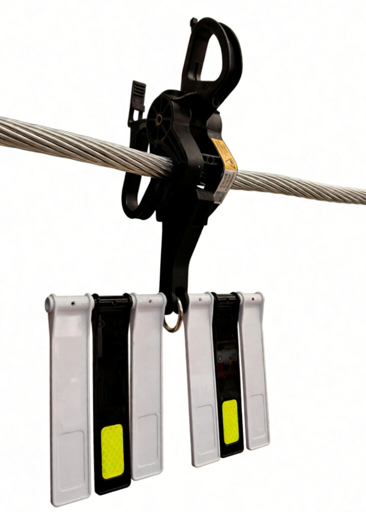 Yes. Many bird diverters and overhead line markers are designed for live-line installation. Products such as BIRDFLAPPA™ and Rotamarka use clamp-based systems that fit a wide conductor range, typically around 2–50 mm, with soft jaws to prevent cable creep and protect the conductor. Installation can be carried out using telescopic hot sticks from the ground via integrated eye ring fittings, reducing the need for outages. For more complex or remote installations, overhead line markers can also be deployed using UAV or drone systems, improving safety and access. This makes them suitable for temporary or long-term use across utilities, mining, and construction environments where maintaining live operations is critical.
